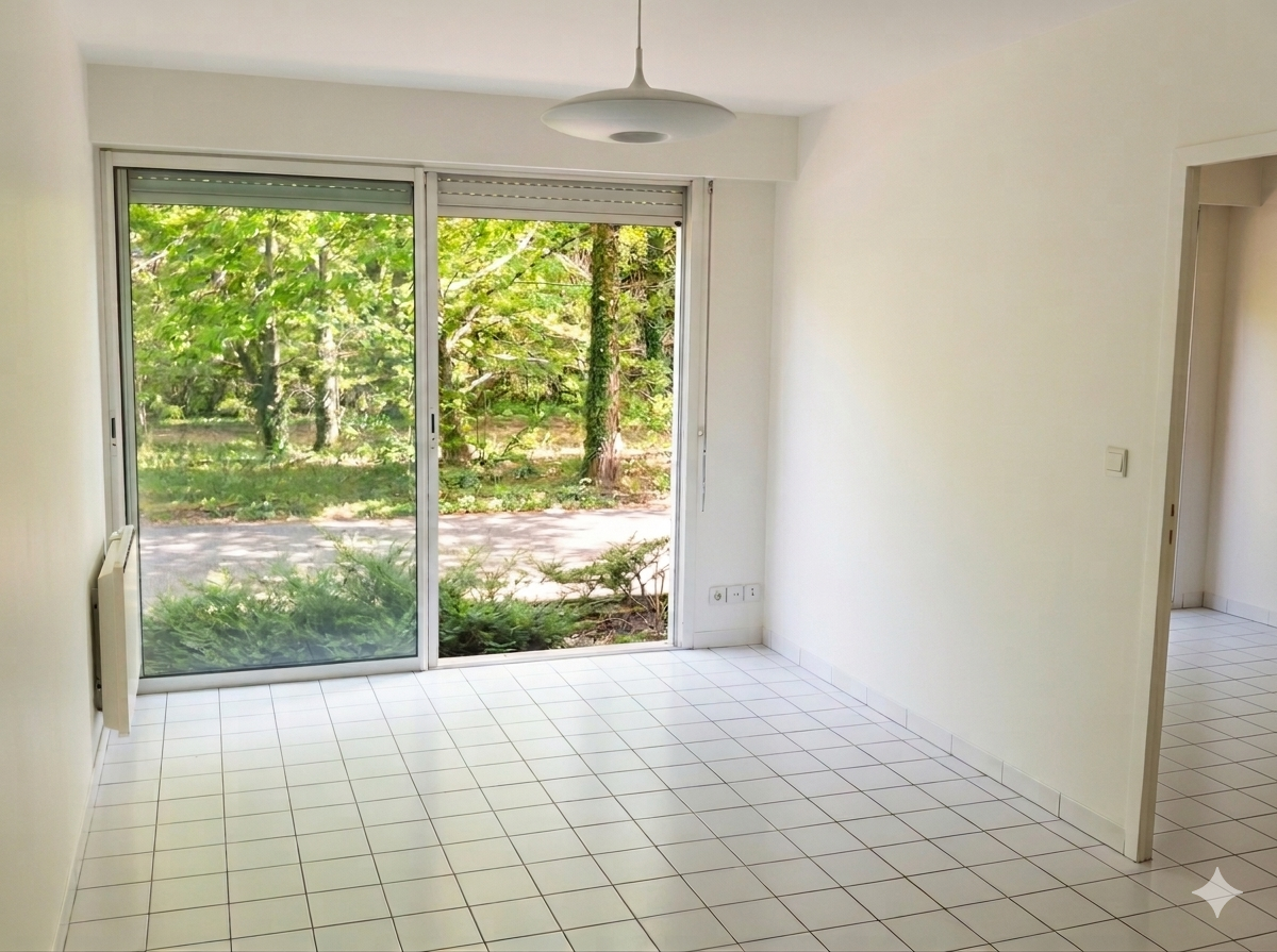 A MIGNALOUX-BEAUVOIR Résidence du Parc. Appartement T1 bis de 34 m² de plain pied. Pièce principale avec kitchenette, chambre séparée, salle d'eau avec wc. LIBRE en JUILLET.