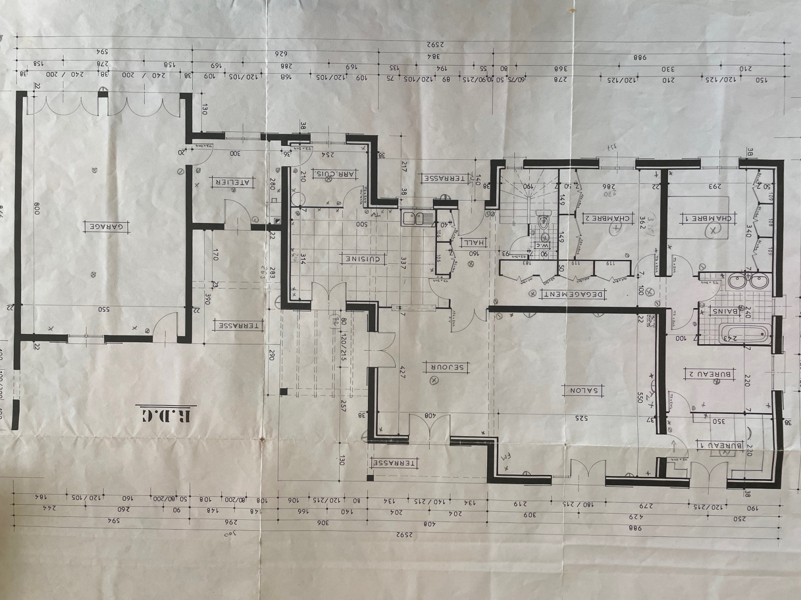 Maison familiale de 1992, surface habitable 176 m², comprenant au rez-de-chaussée : entrée, séjour-salon, cuisine équipée + arrière cuisine, 3 chambres, salle de bains, wc.